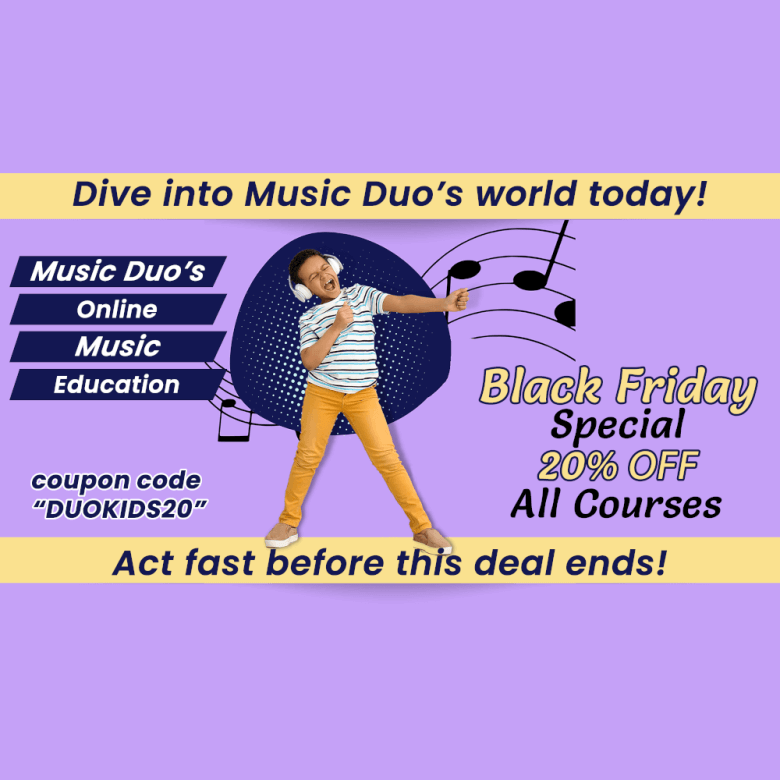 Attention parents! Give your children the gift of music education with Music Duo’s Online courses designed just for elementary-age children! Use coupon code **DUOKIDS20** to receive 20% off all courses.