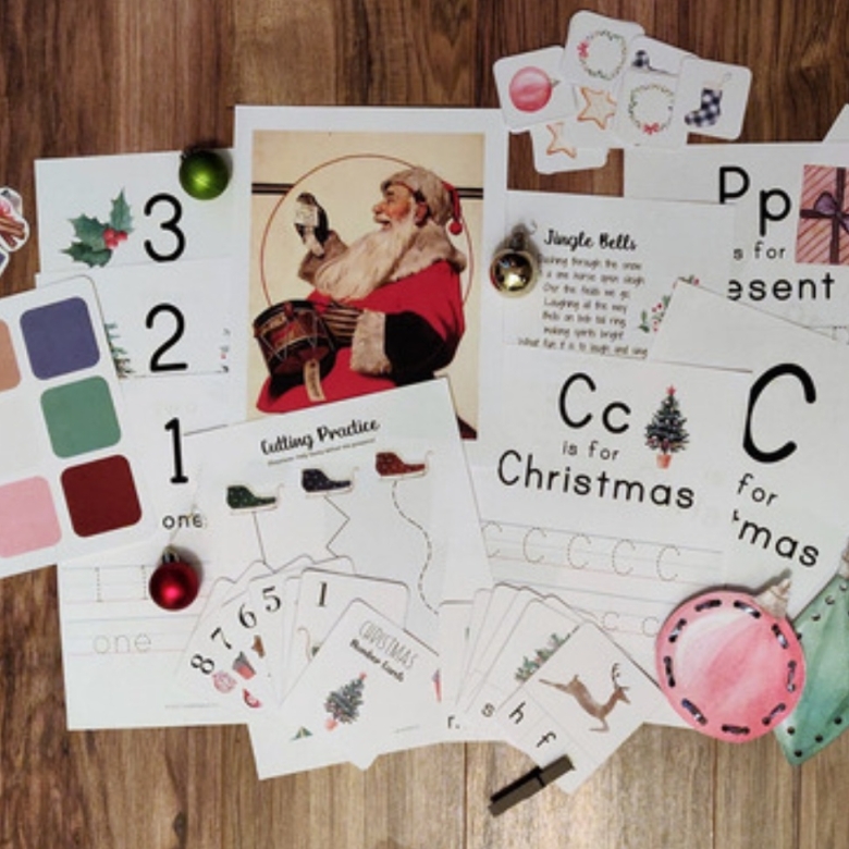 Preschool Christmas Unit: This 46-page Preschool Learning Pack is filled with wonderful activities for your young preschoolers to do at Christmas time. It includes math, copywork, phonics, art, poetry, games, and so much more! All of the pages include beautiful watercolor illustrations of all things Christmas. Just print, cut out, and you have ready-made activities for gentle, holiday learning! Best for ages 3-6. $5